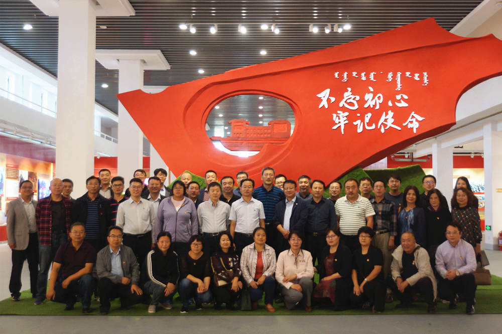 在舉國上下歡慶新中國成立70周年之際,9月25日下午,學(xué)院黨委組織了“不忘初心、牢記使命”主題教育處級干部現(xiàn)場教育。孫智憑書記帶領(lǐng)全院副處級以上干部50余人前往內(nèi)蒙古展覽館,參觀自治區(qū)“不忘初心、牢記使命”主題教育系列展:“黨的光輝照北疆——內(nèi)蒙古老宣傳畫老照片文獻(xiàn)史料展”與“內(nèi)蒙古民族新文化從這里起步——內(nèi)蒙古文工團(tuán)回顧展”。