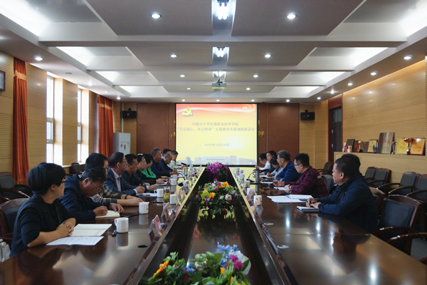 按照《內(nèi)蒙古大學(xué)交通職業(yè)技術(shù)學(xué)院黨委開(kāi)展“不忘初心、牢記使命”主題教育工作方案》要求,2019年10月10日下午,學(xué)院黨委書(shū)記孫智憑在交通樓A439會(huì)議室主持召開(kāi)了“不忘初心、牢記使命”專題調(diào)研座談會(huì)。自治區(qū)黨委主題教育第八巡回指導(dǎo)組成員、內(nèi)蒙古水利水電設(shè)計(jì)院組織人事處干部王宇出席座談會(huì),學(xué)院黨政辦公室、黨委組織部、黨委宣傳部、人事與后勤保衛(wèi)處負(fù)責(zé)人,各黨總支、直屬黨支部書(shū)記參加座談。