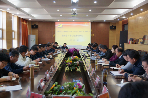 10月11日下午,學院黨委在A439開展“不忘初心、牢記使命”主題教育學習研討,黨委理論學習中心組全體成員參加。