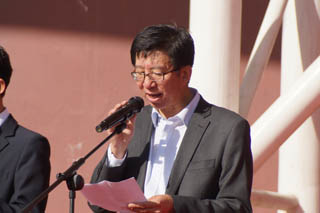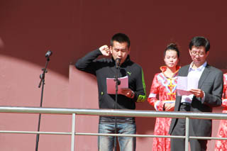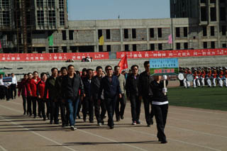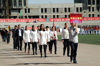 學(xué)院常務(wù)副院長(zhǎng)董平致運(yùn)動(dòng)會(huì)開幕詞。首先,他代表學(xué)院對(duì)第46屆田徑運(yùn)動(dòng)會(huì)的開幕表示祝賀,對(duì)到場(chǎng)的所有領(lǐng)導(dǎo)嘉賓表示熱烈的歡迎,對(duì)為本次運(yùn)動(dòng)會(huì)籌備工作付出辛勤勞動(dòng)的老師、同學(xué)們表示誠(chéng)摯的謝意。他說,從上屆運(yùn)動(dòng)會(huì)到這屆運(yùn)動(dòng)會(huì),學(xué)院在體育教學(xué)工作方面有了新的發(fā)展,高等學(xué)校體育工作基本標(biāo)準(zhǔn)得到貫徹落實(shí)。突破自我、超越自我的體育精神有了新的傳承與發(fā)揚(yáng),群眾性體育活動(dòng)有了新的進(jìn)步。伴隨著觀念的更新,越來越多的老師和同學(xué)參加到了各種各樣的活動(dòng)中。這些豐富的活動(dòng),為提高校園文化建設(shè)和大學(xué)精神的弘揚(yáng),堅(jiān)持全面貫徹教育方針,大力推進(jìn)素質(zhì)教育,特別是提高學(xué)生的身體素質(zhì)起到了積極作用。此次運(yùn)動(dòng)會(huì)將是對(duì)體育教學(xué)工作的集中檢閱,也是群眾性體育活動(dòng)和校園文化建設(shè)的集中展示。交通學(xué)院是一個(gè)有著光榮歷史和優(yōu)良傳統(tǒng)的院校,希望同學(xué)們抓住在校期間的每一個(gè)機(jī)會(huì),不斷提升自己的能力,使自己成為新時(shí)代的優(yōu)秀學(xué)子和合格人才,希望在本屆運(yùn)動(dòng)會(huì)上秉承“更高、更快、更強(qiáng)”的體育精神,賽出成績(jī)、賽出風(fēng)格、賽出水平,賽出交通學(xué)院的風(fēng)采。最后,他祝愿本次運(yùn)動(dòng)會(huì)圓滿成功!