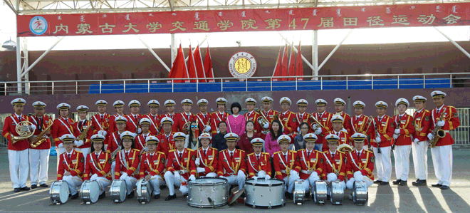 擔(dān)任運動會開閉幕式現(xiàn)場演奏任務(wù)的學(xué)院軍樂團 | |