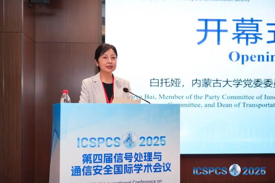 內(nèi)蒙古大學(xué)張宏教授主持開幕式。內(nèi)蒙古大學(xué)黨委委員、交通學(xué)院黨委副書記、院長白托婭為大會致辭,對蒞臨本次會議的各位專家學(xué)者致以最真誠的問候與熱烈的歡迎,同時指出高質(zhì)量的國際會議不僅給相關(guān)領(lǐng)域的科研人員和專家學(xué)者搭建了交流溝通的平臺,而且能有效推動學(xué)院學(xué)科的建設(shè)與發(fā)展。她衷心祝愿各位專家學(xué)者在未來的合作中取得更加豐碩的成果,共同為信號處理與通信安全領(lǐng)域的進(jìn)步與發(fā)展注入動力。